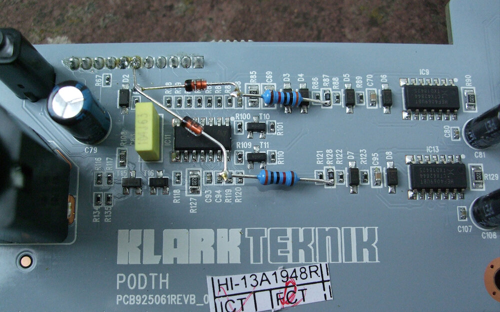 Die Modifikation (Foto) wird auch über eine Website angeboten. Dafür muss das BBD-320 nach Leeds in England geschickt werden. Dort werden 10 SMD Widerstände und 2 SMD Kondensatoren ausgetauscht und die Widerstandsdioden in Serie hinzugefügt.