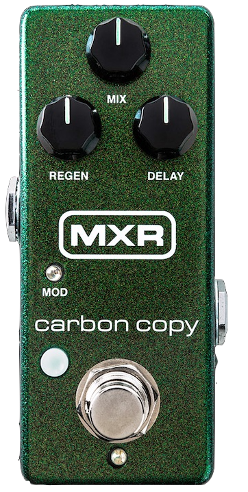 Das grössere, klanglich gleiche "MXR Carbon Copy" hat sich innerhalb kürzester Zeit verbreitet und ist regelrecht zum "Standard" geworden. Das neuere "Carbon Copy Mini" hat noch einen Miniatur Schalter an der Seite, mit dem es in den höhenbetonteren "Bright-Mode" versetzt werden kann.