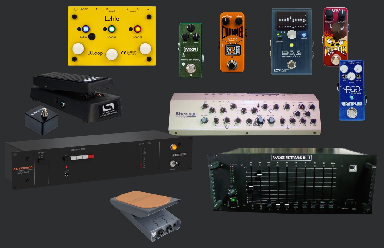 Synthesizer brauchen Effektgeräte! Auch für den Synthesizer sind FX-Pedale beliebt, jedoch kommen sie eher in kleineren Mengen, als bei Gitarristen, da Synthesizer ja bereits Filter, Waveshaper, etc. haben. Mit den Effekt-Kistchen lassen sich aber aufregende Farben und eine deutliche Individualisierung des Instrumental-Sounds erreichen.