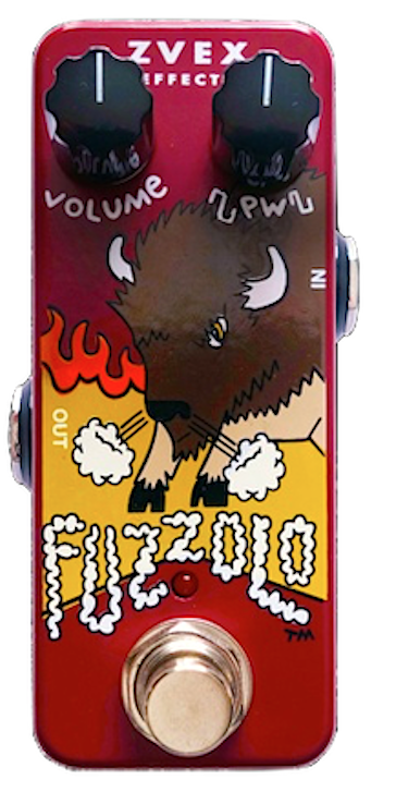 Ein Fuzz verwandelt den eingehenden Klang in Rechteck-Wellenformen, aber nicht so gediegen, wie ein Waveshaper, sondern eher brutal. Der Fuzz Effekt wurde dem Klang eines kaputt gegangenen Mischpultkanals nachempfunden. Neben dem Volume verfügt das Fuzzolo nur über einen Pulse Width Regler (rechts), einen Modulator, mit dem die Pulse-Wave Länge verändert werden kann, so dass der positive und negative Anteil des Klanges ("oben und unten") nicht mehr gleich lang sind. Bei maximaler Einstellung kann das bis in die Phasenauslöschung gehen, die dann wie ein Gate wirkt. Der Ton stirbt ab, zerbricht oder wird abgerissen. Eine sehr schöne Zerstörung!