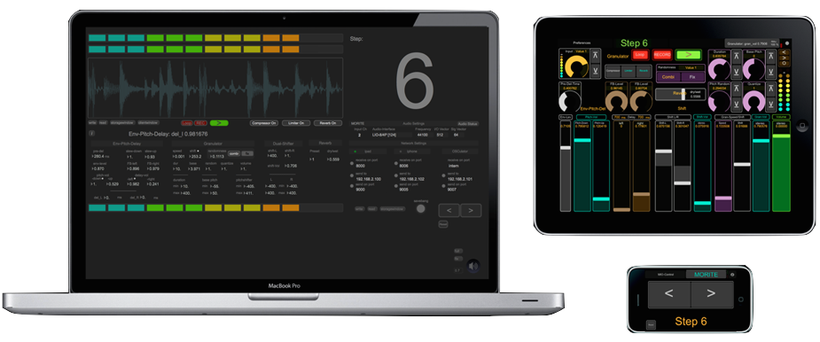Now the visible controllers on the iPad itself turned out to be the sliders, knobs or XY-pads. Gone are the days when a mouse or trackpad (while keeping the computer monitor visually fixed) was almost unavoidable. Instead of a MIDI fader bank, the iPad now resided with the performer and could look like this, as an example.