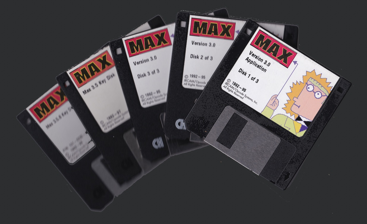 MAX was an incredible shortening of the road. Interesting things were practically instantly possible, which could then also be immediately implemented musically! At that time I was just learning C Programming - on the photo you can see the first (yellow) Floppy Disk, which is a Symantec "Think C". It was hardcore and needed already quite a few months to even compile a first musical function - with which, however, nothing could be done yet.