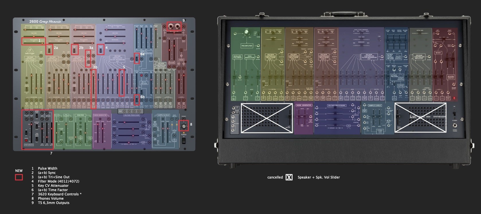 With the 2600 Blue Marvin and Gray Meanie, Uli Behringer has launched a big deal! I hope that enough resonance will arise so that these models remain in production. I also like that Behringer did not use - or possibly could not acquire (?) - the name "ARP". "2600", "Blue Marvin", "Gray Meanie" and the unique layout says enough. Let's just say "Behringer 2600". Honour to whom honour is deserved.