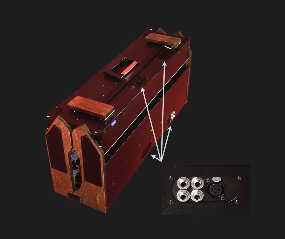 The "System Interface 227e" also includes a breakout panel on the rear of the case. The four Outputs are available as 6,3mm TS Jacks and it has a XLR Microphone Input.