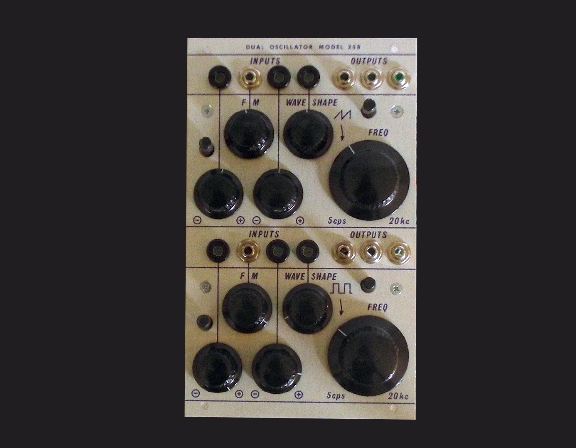 The "Dual Oscillator 258" (right) is perhaps "the" classic Buchla VCO. The upper Oscillator is Sine to Sawtooth, the lower Sine to Rectangle.
