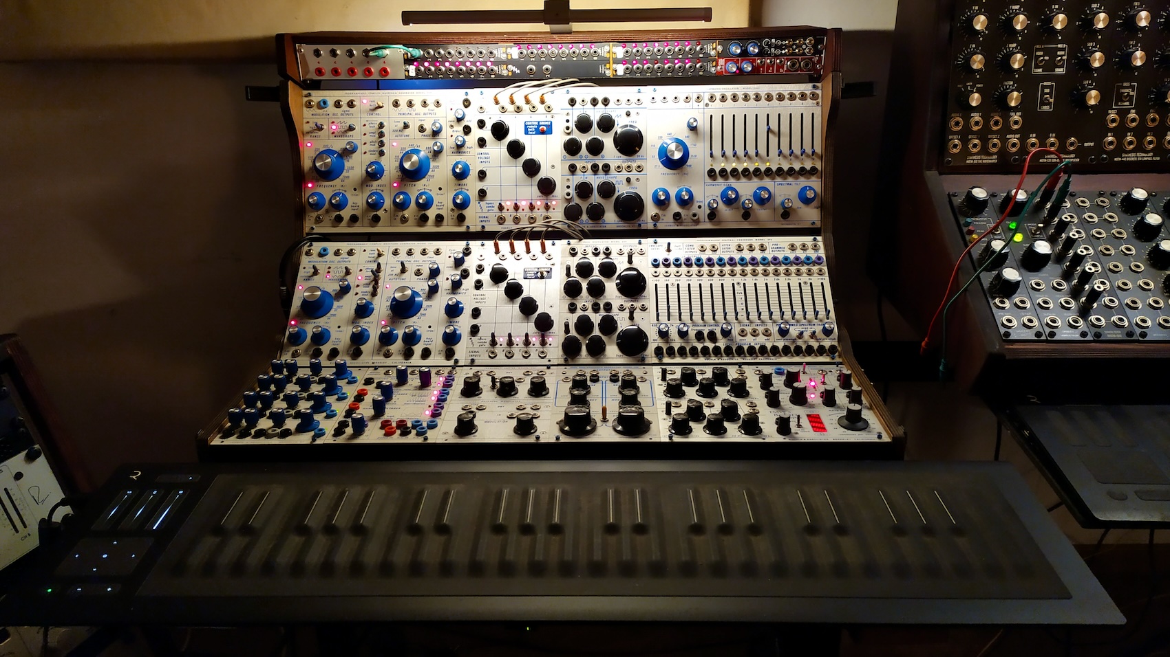 Don't be fooled by the small size (18U) of my newly scaled-down instrument. With only two exceptions (Source of Uncertainty Model 266 and Quad Voltage Processor 254v), only ”sounding” modules are included in the instrument. There are eleven VCOs (5 dual VCOs and one additive VCO (partial tone generator), ring modulator, frequency shifter, dual BP filter, comb filter, filter bank, spectral processor, eight low-pass gates, and a barberpole phase shifter. There are no envelope generators, sequencers, or other step or pulse generators (which are particularly large in the 200 Series), no matrix mixer, and no system interface. I do these things in MAX and control them via one or two iPads, where they can be accessed as tabs. Settings can also be accessed as presets. Together with the Rise keyboard, this corresponds to the size of a 200 Series Buchla of 50U or more!