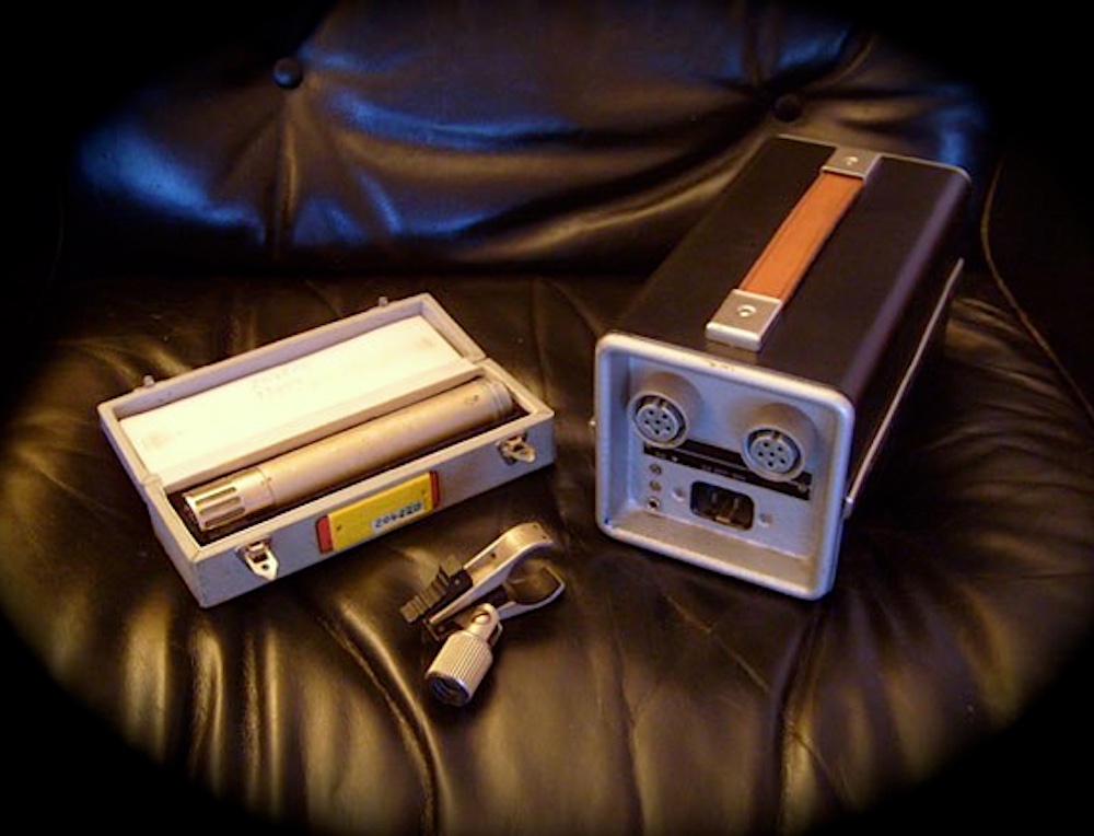 Thanks to a "good connection" during the dissolution of the (state-owned) GDR studios, I came into possession of tube microphones from Microtech-Gefell - the eastern offshoot of the Neumann company. These were so inexpensive that I dare not even mention the price! By means of small labels, I was able to identify them as "the better of the lot" - in those studios, it was common practice to attach small identifiers to microphones and microphone cases to ensure the best possible quality in recordings. I sent the microphones for technical service and, meanwhile, made the battered feeding-unit cases look more appealing. Pictured here is the smallest model, an M582.1 with feed section, after service and refurbishment. Instead of the original mount, however, I mounted them to the stand using a spider. These historic tube microphones are truly a dream!