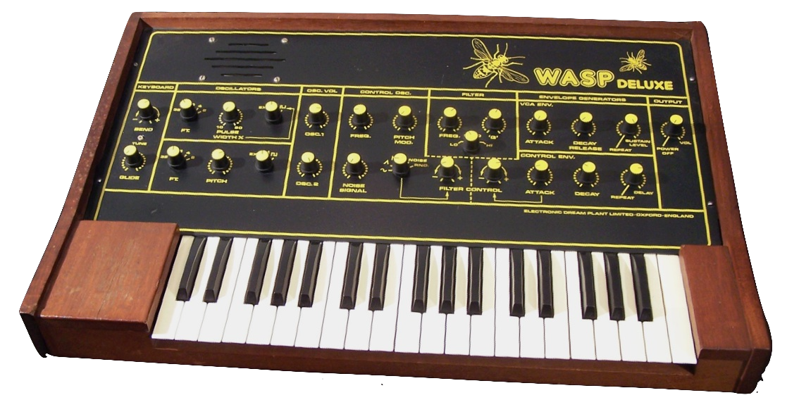 The Wasp may be somewhat one-sided, but everything that can be done with it sounds good. It's famous for the filter design. Everything has character and its own charm. The direction is rather psychedelic, spacey, but it's also great for melodies. It was nothing to travel - it is astonishingly large (but lightweight), and, with under 80 instruments ever built, far too rare to expose it to such strains.